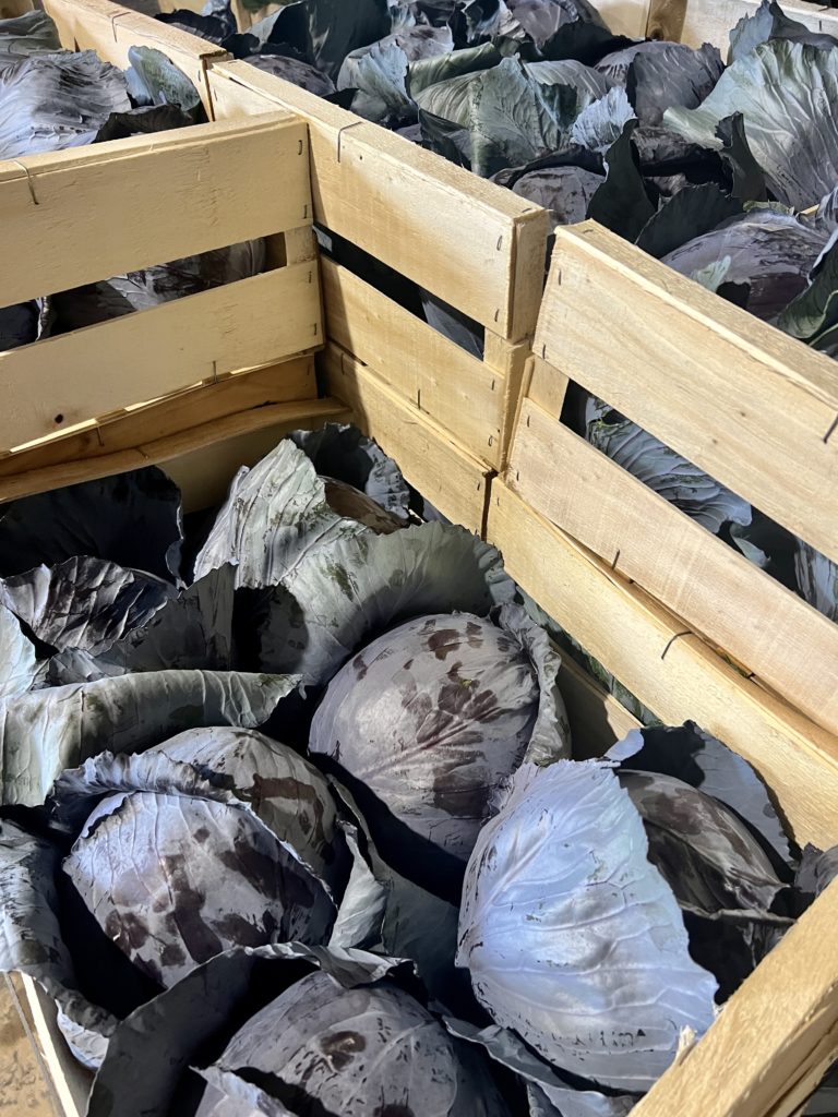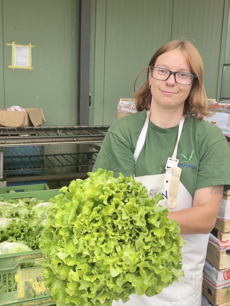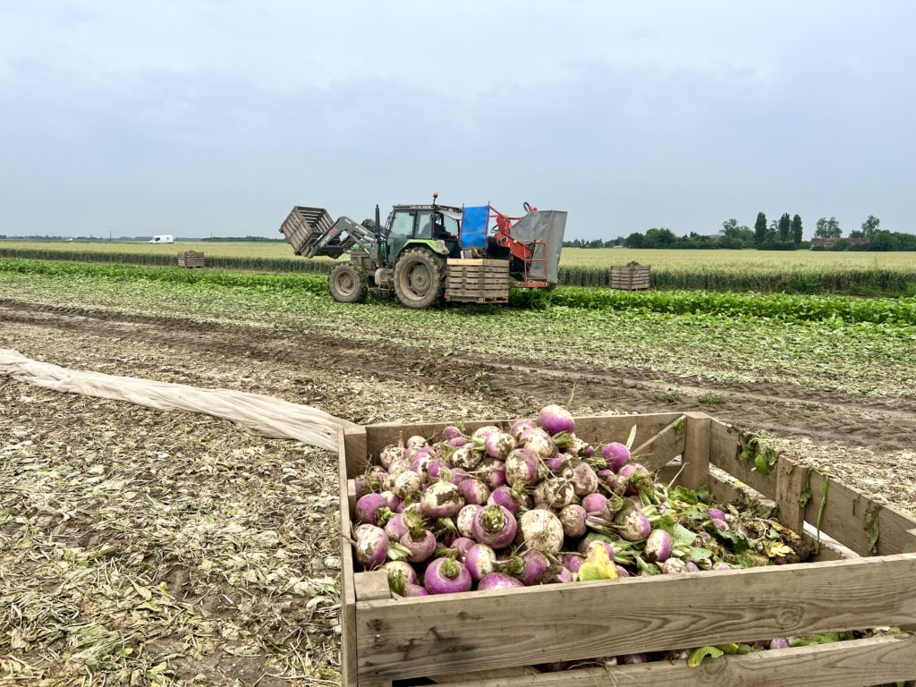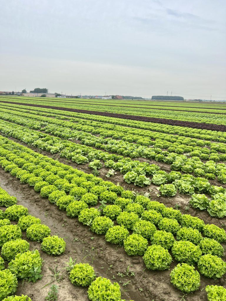 Ici, on produit de la salade (20 ha), du poireau (14 ha), du chou (rouge, blanc, frisé – 12,5 ha), des carottes (4 ha), des navets (6 ha), du céleri branche (9 ares) du céleri-rave (3 ha), du potimarron et de la butternut (5 ha). Le secret ici, c’est la diversité pour répondre aux demandes des clients.