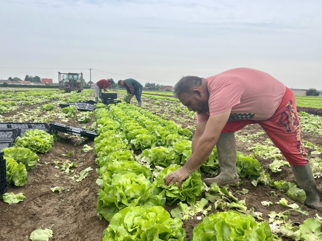 Dans les champs autour du hangar, des salades et des poireaux à perte de vue. Ici une équipe de saisonniers récolte de la salade et des choux. Là-bas une équipe repique des poireaux. Un peu plus loin, un salarié arrache des navets. Partout une activité intense, selon un ballet bien organisé par Didier Mastain, ses fils Pierre et Adrien et son beau-frère Olivier Dhelin.