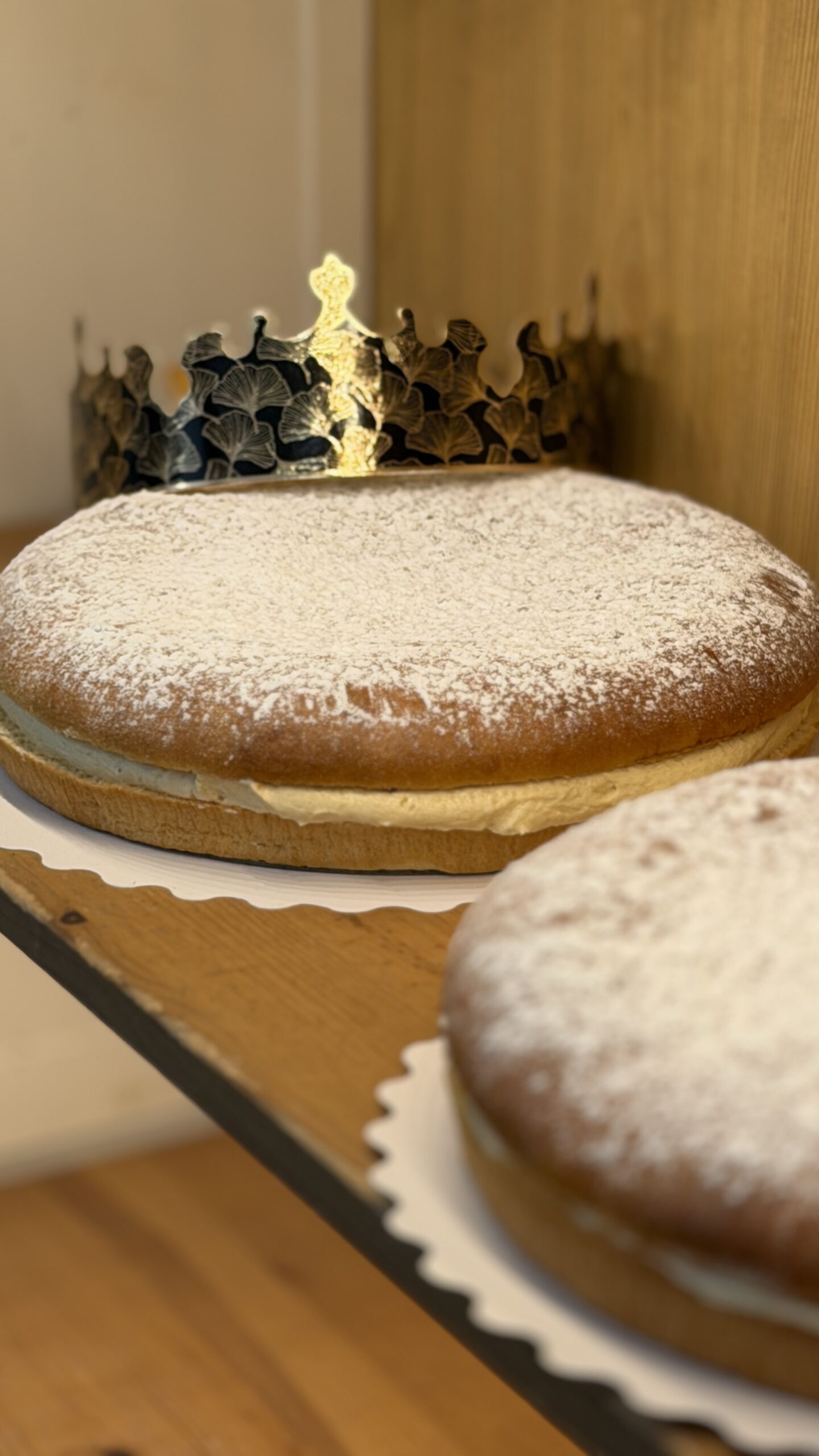 Oubliez la galette feuilletée que l’on trouve partout : ici, on parle d’une galette briochée, tendre et moelleuse, plus proche d’une tarte tropézienne que d’une galette classique.