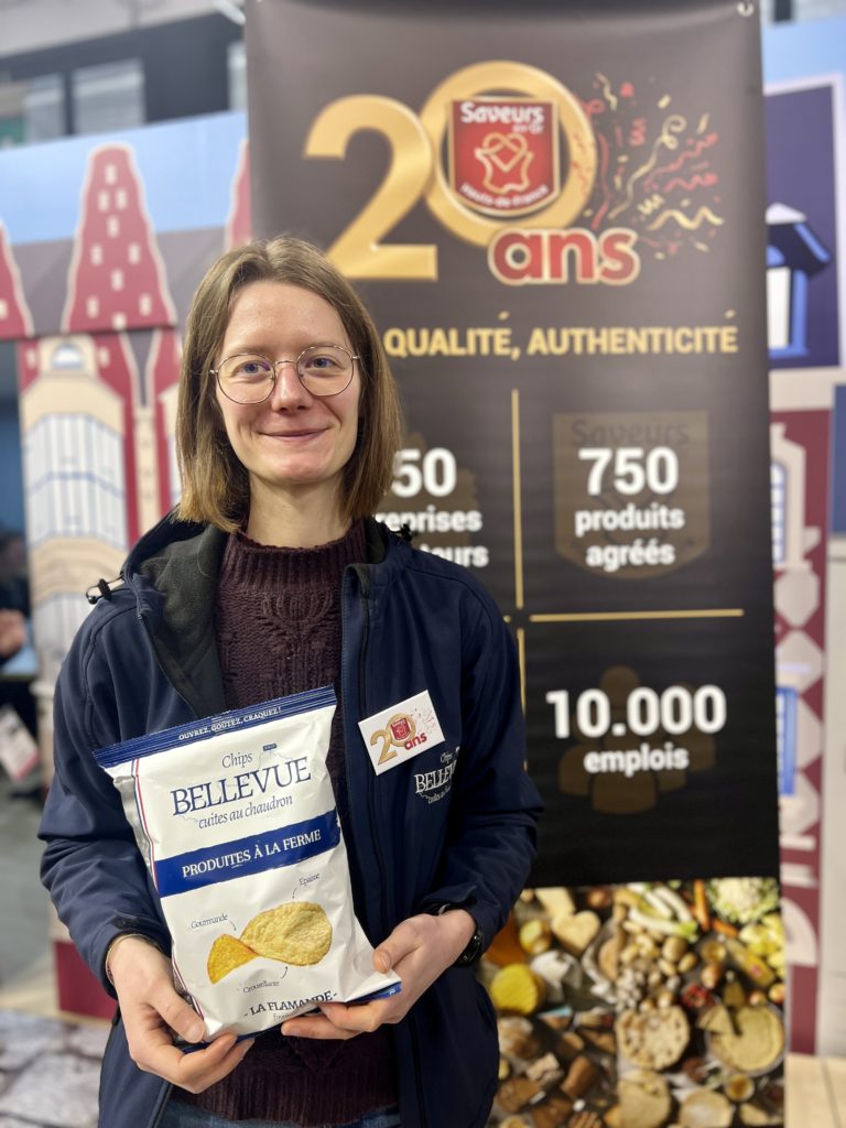 Manon Loingeville, productrice des chips Bellevue : « Nous venons d’adhérer à la marque car c’est un marqueur fort, qui rassemble. Nous voulions profiter de cette énergie, de ce réseau et de cette synergie entre différents acteurs et producteurs du Nord. Saveurs en’Or nous offre vraiment une visibilité en plus, alors que nous sommes en plein développement. »