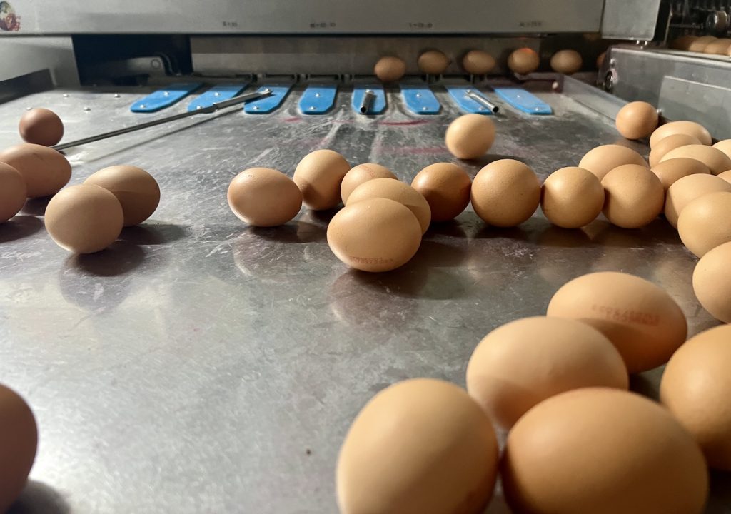 J’élève des poules de la race Hy-Line, des poules rousses, rustiques, qui sont de bonnes pondeuses. C’est un élevage de plein air, même si les poules sont actuellement confinées à cause des risques liés à la grippe aviaire. Elles arrivent ici à 17 semaines et pourront profiter de 30 000 m2 de pâturages dès que la situation sanitaire reviendra à la normale. Cela représente 160 000 par mois que nous ramasse, trions et conditionnons sur place. Et une fois leur mission ici achevée, nous les proposons à la vente pour les particuliers afin qu’elles aient une retraite paisible.