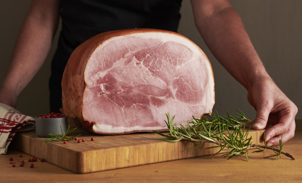 « Notre entreprise est reconnue pour son savoir-faire artisanal. Cela veut dire que nos recettes demandent un tour de main, une expertise de nos salariés dont certains ont 30 ans de maison. Nos jambons arrivent entiers, non désossés, à 48h maximum d’abattage.