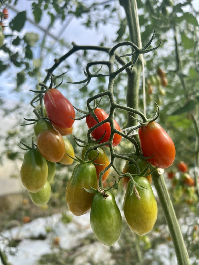 Il a fait le choix de la diversification, avec une multitude de variétés rustiques appréciées par les consommateurs. Il y a la famille des tomates cerises : Mini-Loup, Black Cherry et Summer, parfaites pour l’apéritif à la saveur douce et sucrée. Et la famille des tomates, choisies pour leur goût et leur productivité. Dans la serre, c’est un festival d’odeurs, de formes et de couleurs !