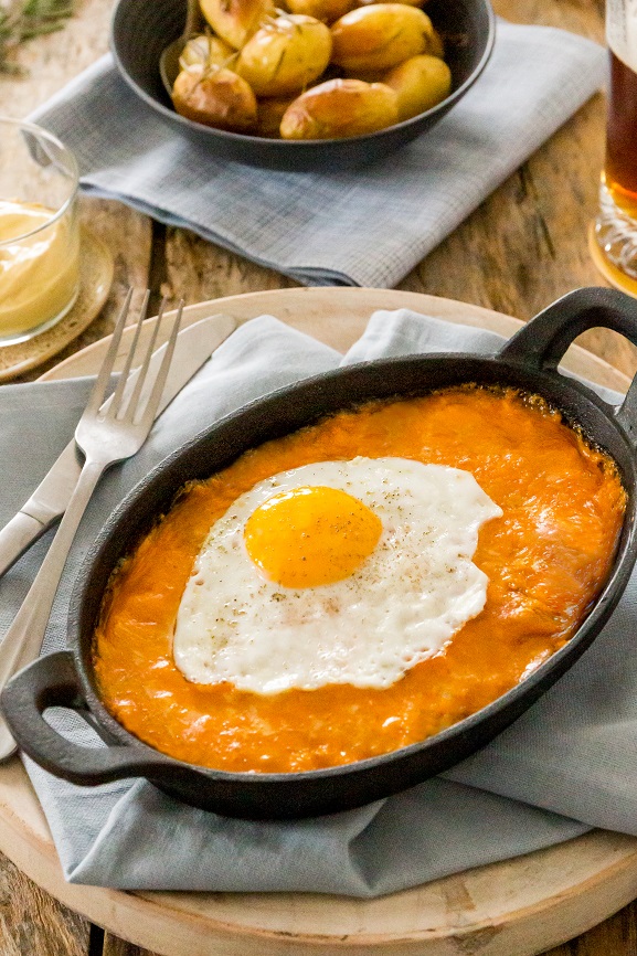 Servez vos ch’ti welsh avec les pommes de terres grenailles, une salade de mâche, et une bière brune locale.