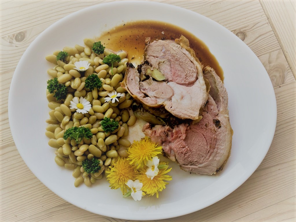 Servir avec des flageolets verts Chevriers, arroser avec la sauce du gigot, à l’ail et persillée.