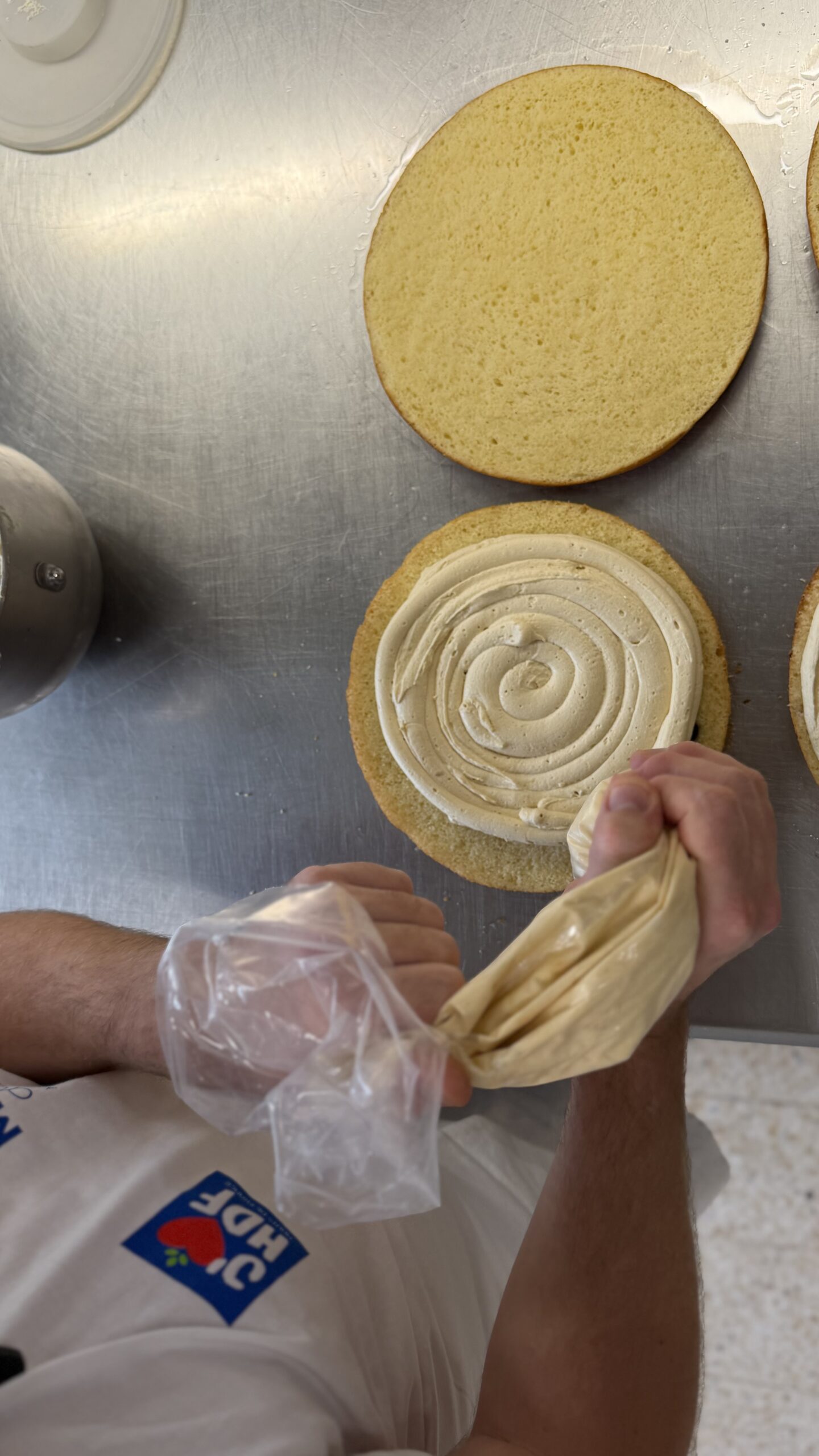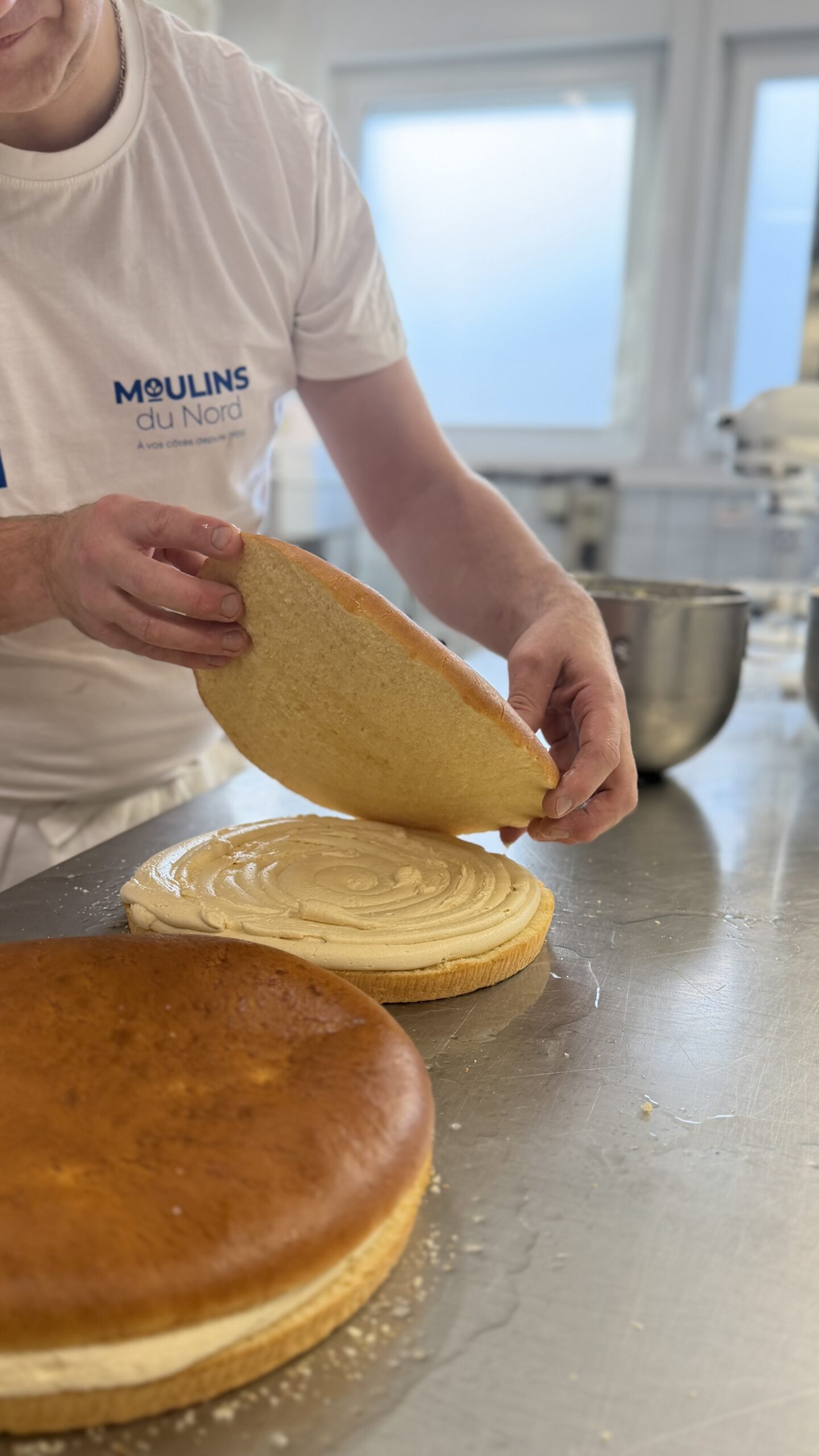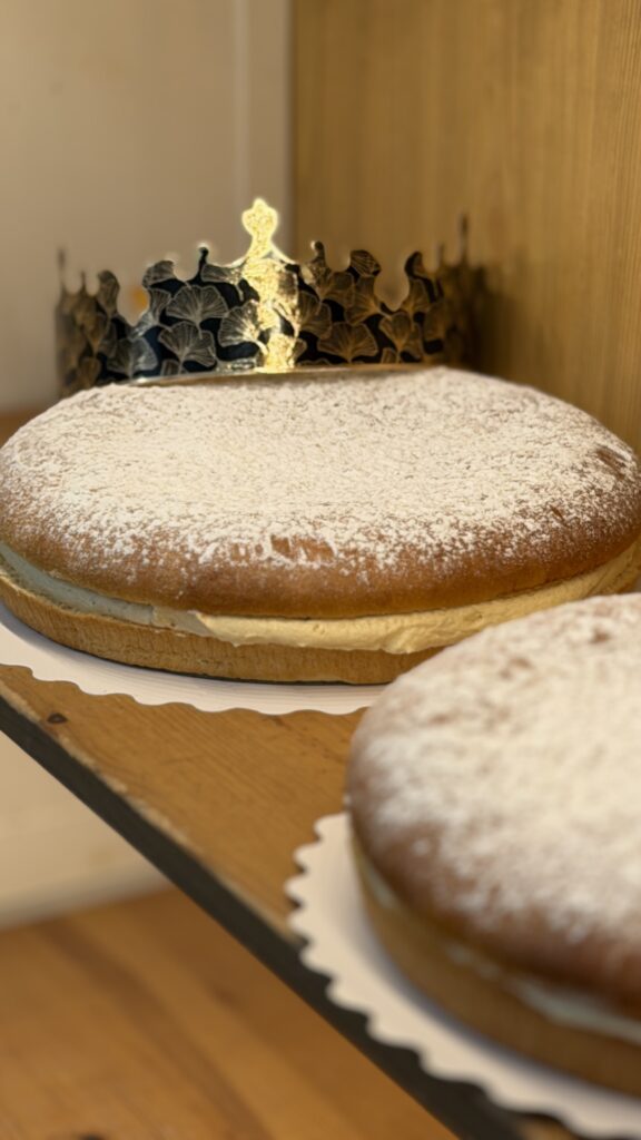 - Imbiber la galette d’un sirop de sucre (100ml d’eau pour 50gr de sucre)