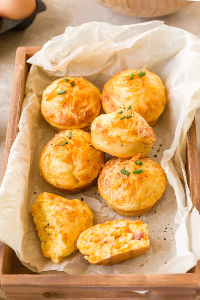 Mettre une pincée d’emmental sur chacun de vos muffins et les enfourner pendant 25 minutes.